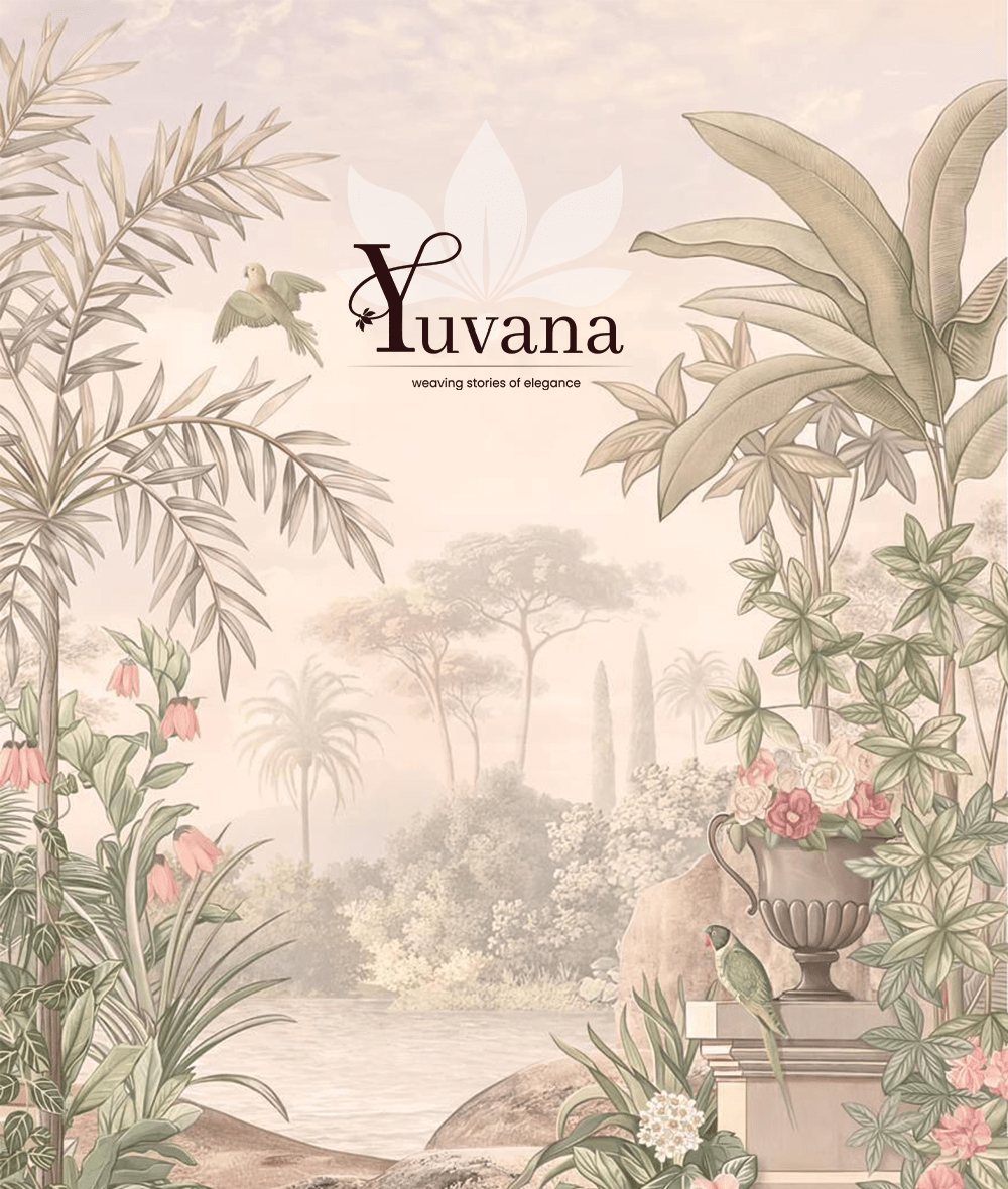 The Yuvana logo is built around a prominent, stylized ‘Y’, crafted to feel graceful and ornamental—reflecting the flow of fabric and the finesse of handwork.